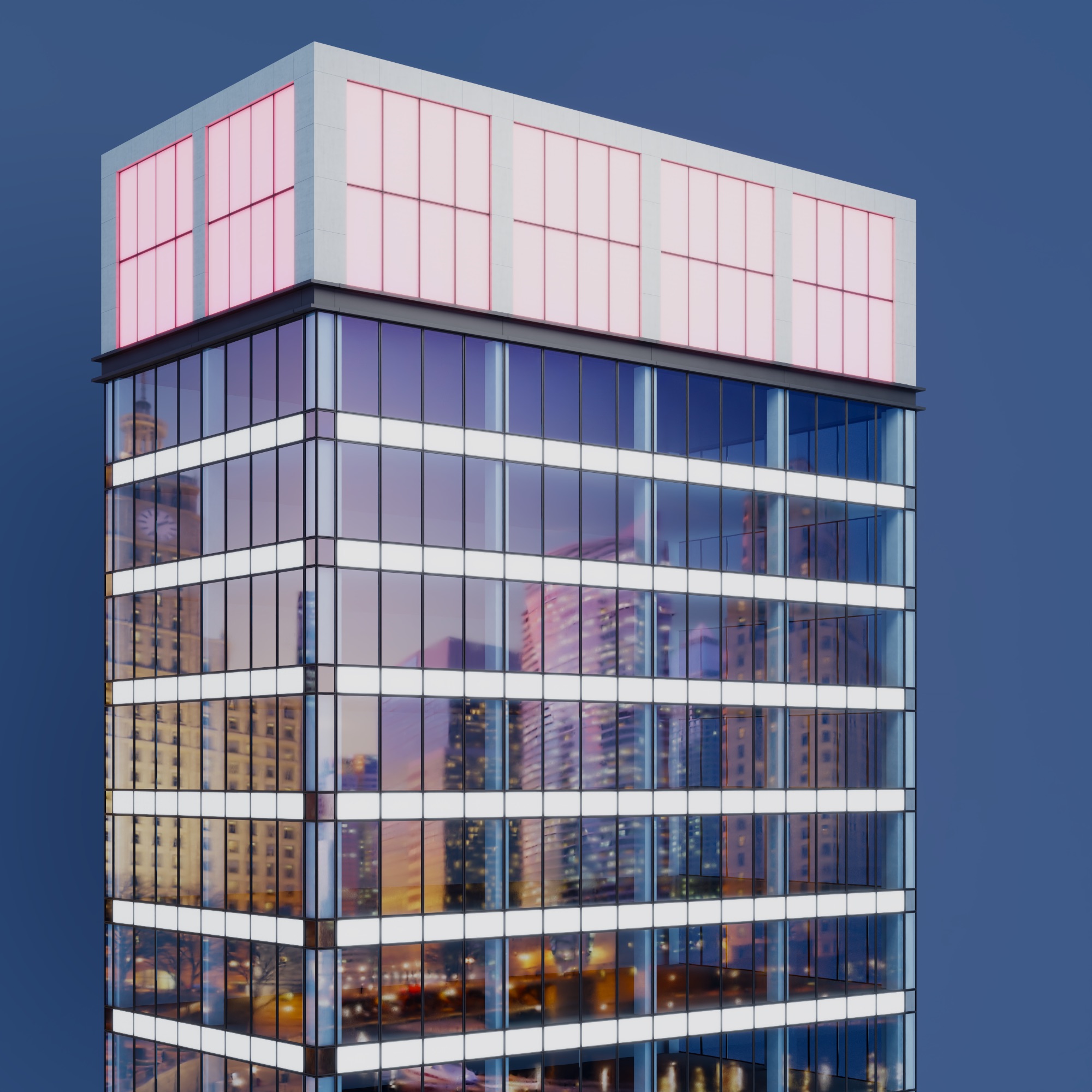 With LEDs all around the glass, light and colours play across the panel, animating the surface with subtle depth and reflections. The glazing façade gains a refined, fancy appearance, where light becomes a design element that enhances the architectural expression.